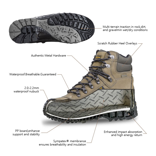 کفش داخلی با جوراب های ضد آب Sympatex آلمانی پوشانده شده است که قابلیت تنفس و ضد آب را دارد و پاهای شما را همیشه خشک نگه می دارد.
