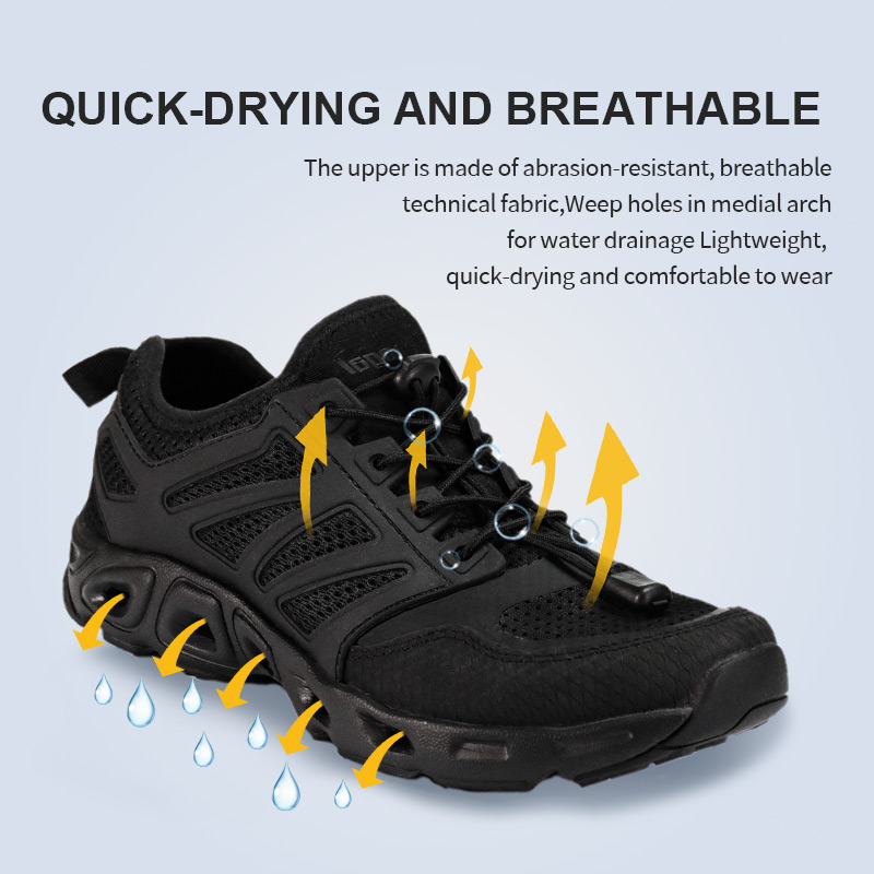 EVA Shock Absorbing Trekking Shoes برای مسیر خیس یا خشک ساخته شده است. با موادی که به سرعت خشک می شوند و درگاه های زهکشی در قوس، آب را به سرعت از جریانی به قله دیگر می ریزد. یک وصله پاشنه لاستیکی ثبات قفل می کند، در حالی که زیره میانی EVA راحتی نرم و ضربه گیر را در زیر پا ایجاد می کند. و زیره لاستیکی ناهموار؟ ساخته شده برای گرفتن تقریباً هر چیزی - سنگ، گل، شن شل. این دوزیست، چابک است و برای حرکت با شما ساخته شده است.