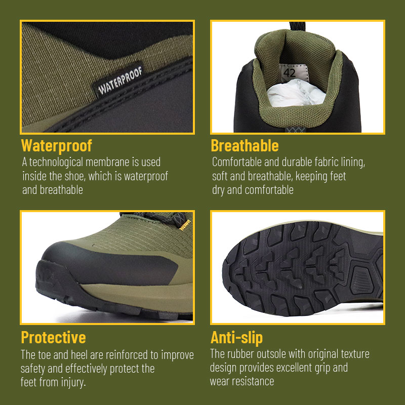 ساخته شده از پارچه های با کیفیت، چرم جیر 1.6-1.8 میلی متر، پارچه نایلونی مقاوم در برابر خش و مقاوم در برابر سایش، کفش تنفس و راحت است.