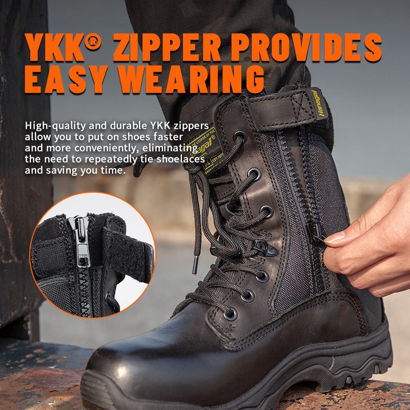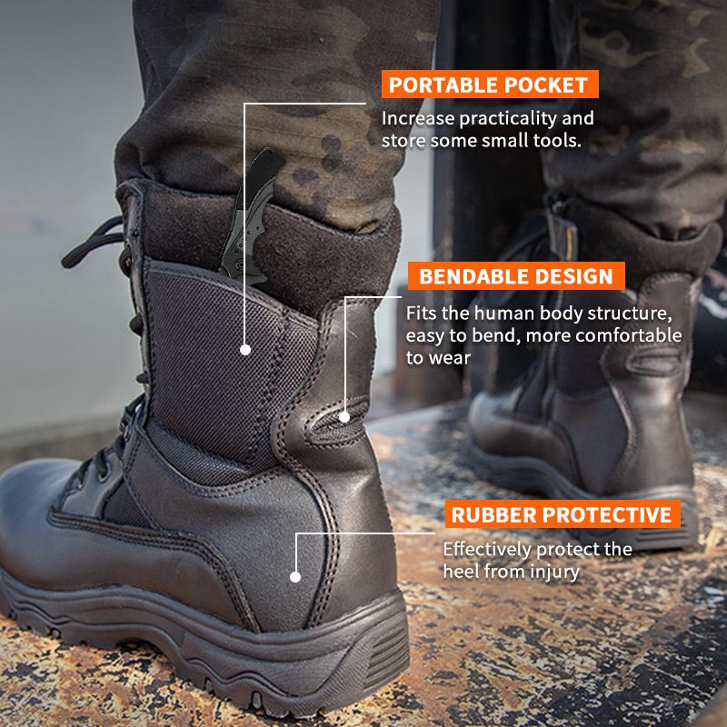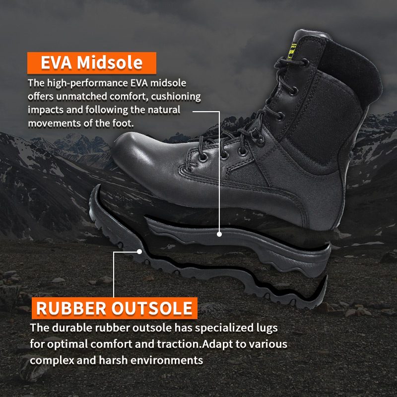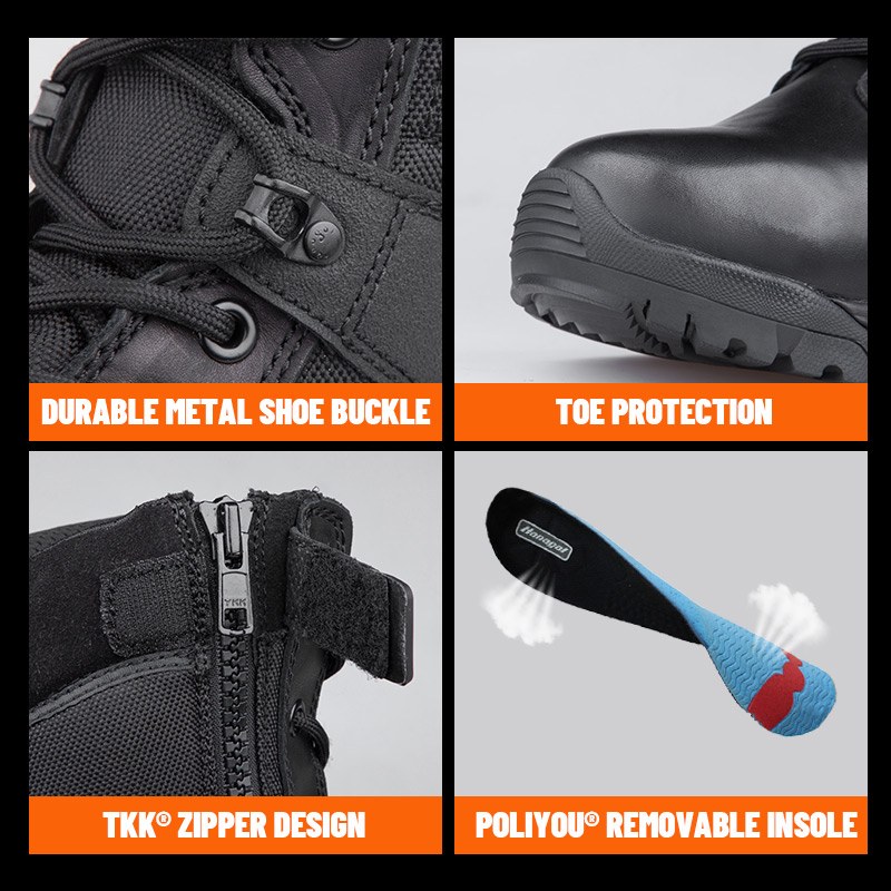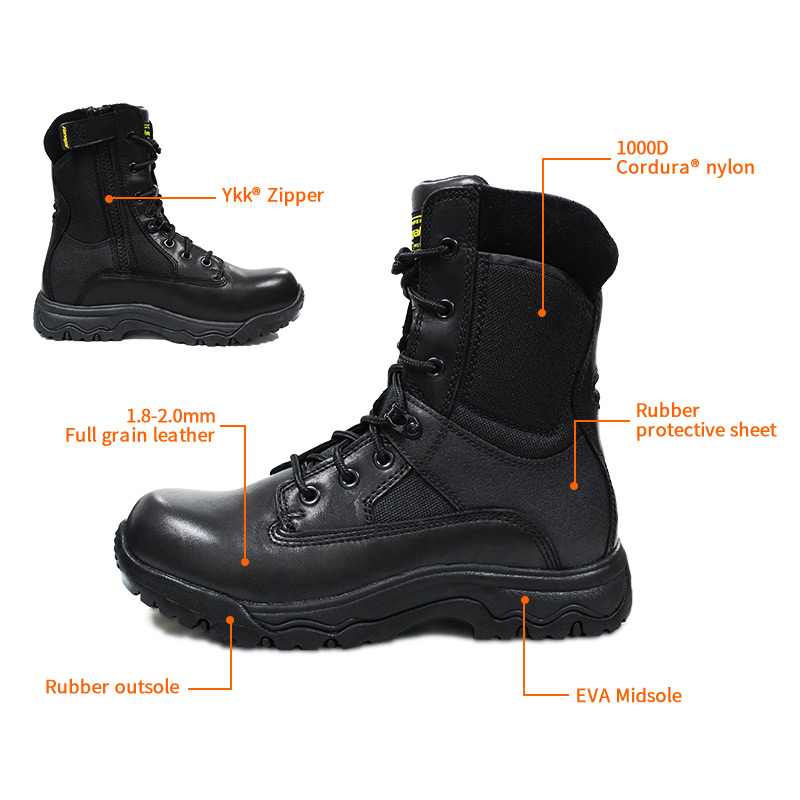 این چکمه های پلیس چرمی YKK Zipper Full Grain برای سفارشی سازی در رنگ ها، مواد و جزئیات با MOQ 800 جفت، ایده آل برای همکاری با برند و خرید گروهی در دسترس هستند. و این چکمه های شکار دارای مزایای زیر هستند:
